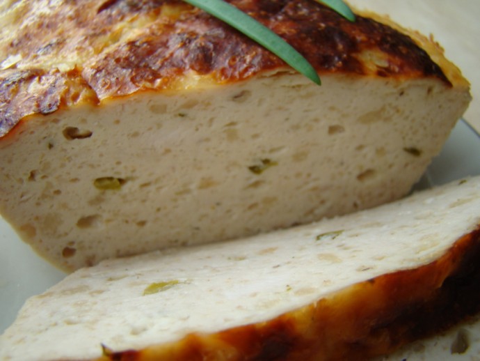Форму для запекания (я взяла алюминиевую одноразовую объемом 1 литр)(у меня силиконовая) смазала растительный маслом. Выложила половину фарша, разровняла. Мне нужно было утилизировать полбаночки оливок. Я их просто выложила в два ряда вдоль формы. Посыпала молотой паприкой. Покрыла оставшимся фаршем. Разровняла поверхность и накрыла форму крышкой (шла в комплекте). Поставила форму в глубокий противень, налила воды до середины формы и отправила в духовку при 200оС. Когда террин схватился (минут через 20-30), сняла крышку и воткнула термощуп.(я сняла с формы фольгу и ещё 1 час запекала) Запекала до достижения температуры в 92о. Вынула из духовки. Оставила остывать не вынимая из формы. Практически весь выделившейся сок впитался при остывании. Получился очень вкусный, сочный террин.